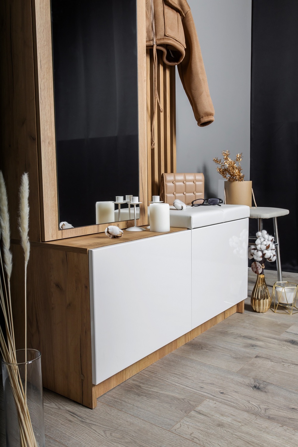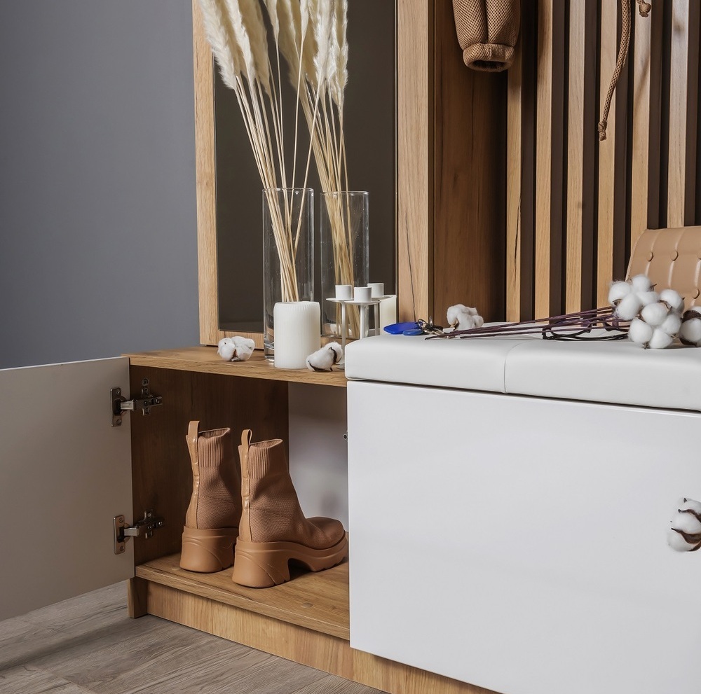 • Внутри антресоли и тумбы есть перегородки, которые делят проем пополам и являются дополнительным ребром жёсткости