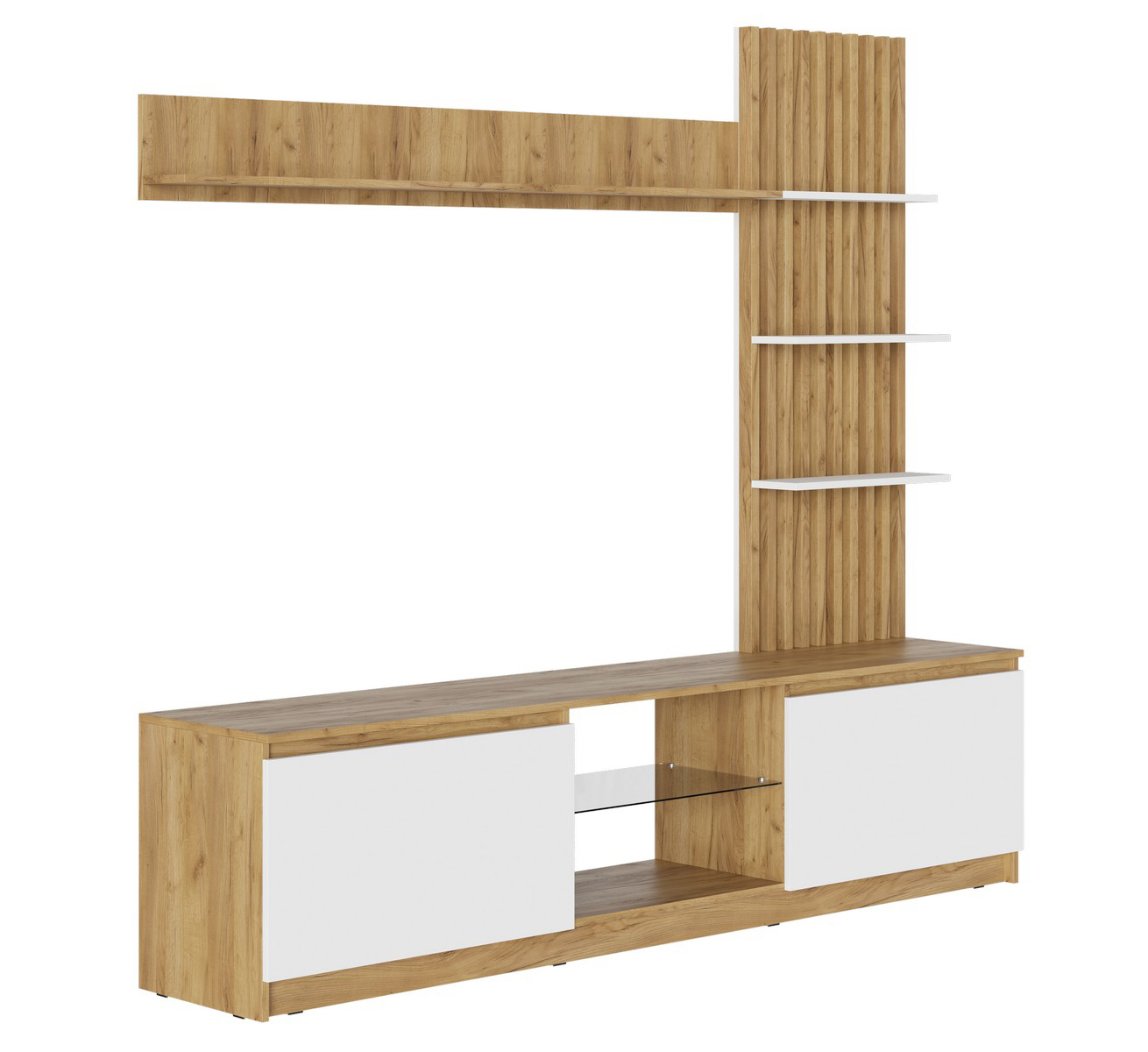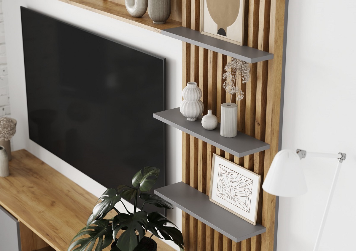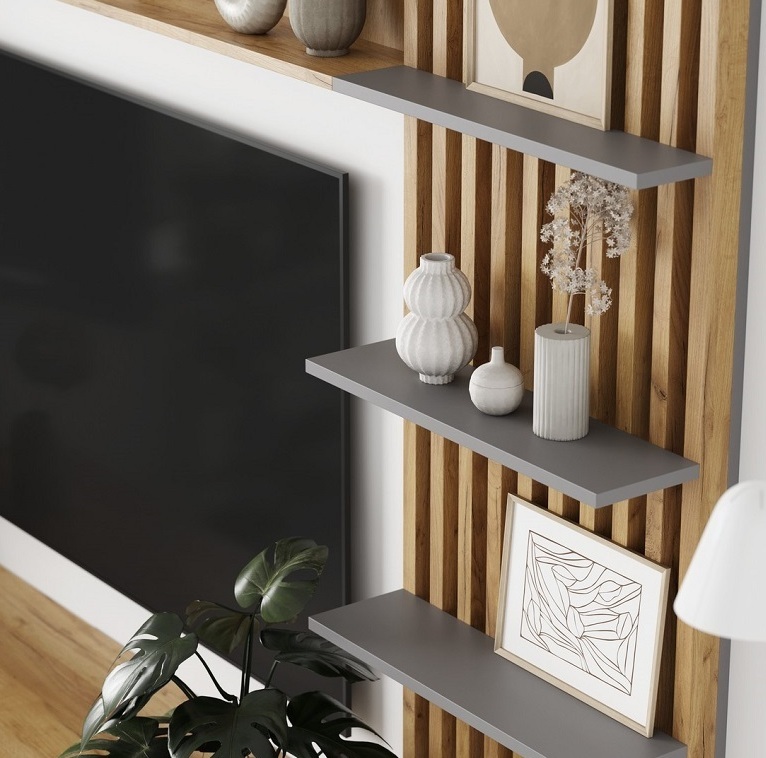 Цвет навесных полок: Дуб крафт золотой/Серый шифер/Белый глянец