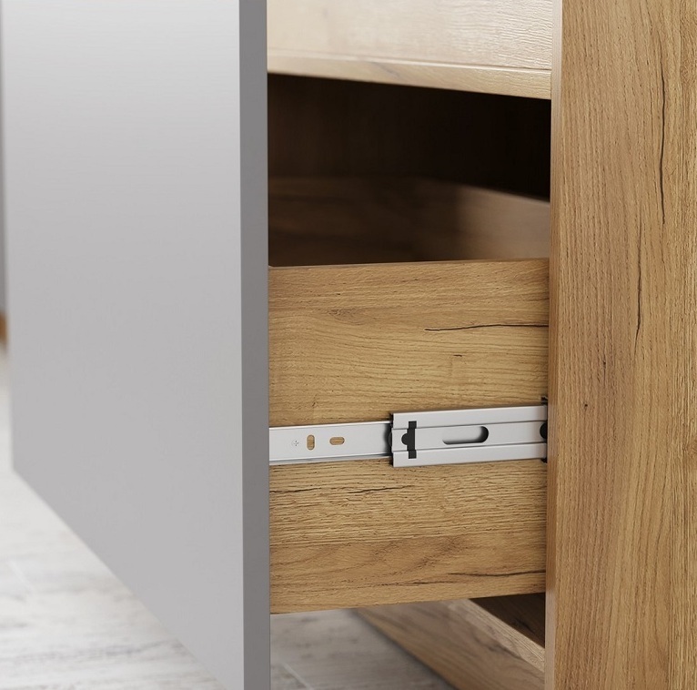 • Два выдвижных ящика на направляющих полного выдвижения, направляющие выдерживают нагрузку до 45 килограмм