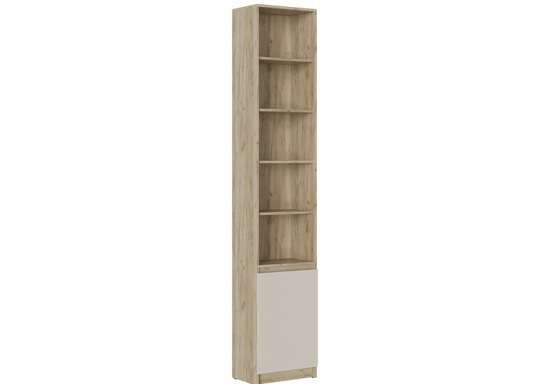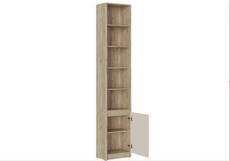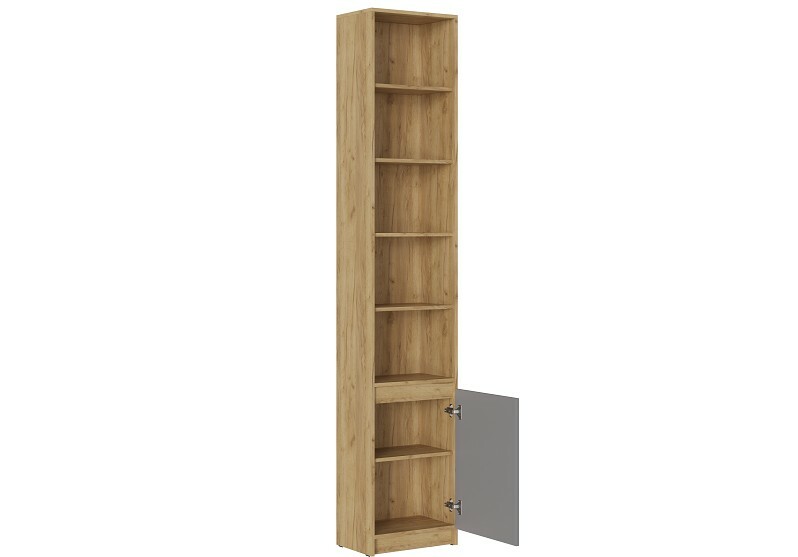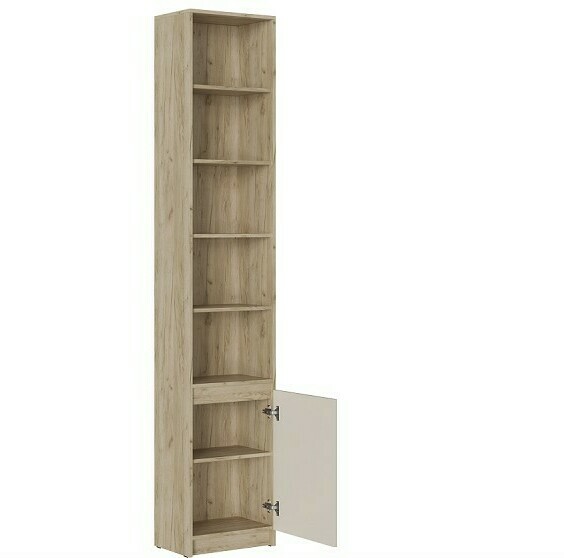 Изнутри зазор закрыт планкой 74мм. Створку можно закрепить и на левую, и на правую боковину стеллажа.